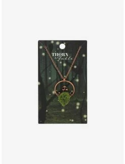 Bring some natural energy to your outfit with this necklace! Add a touch of the forest to any look with this ornate piece, featuring a deep green faux crystal encased in a rustic holder with mushrooms blooming in the center.