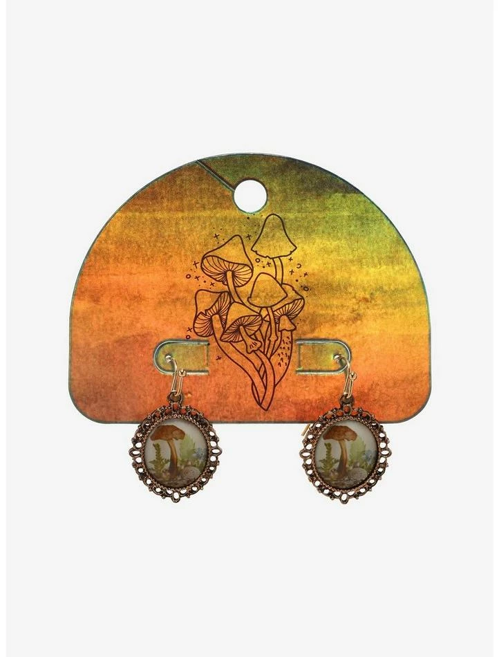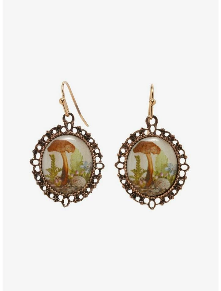 We’re definitely making (mush)room in our jewelry collection for these antique earrings! Add a vintage touch to your look with these drop earrings, featuring antique mushrooms in gold-tone frames.