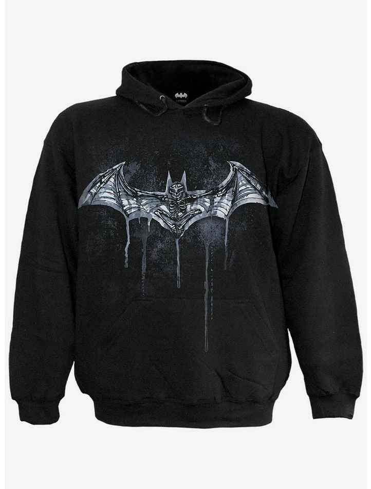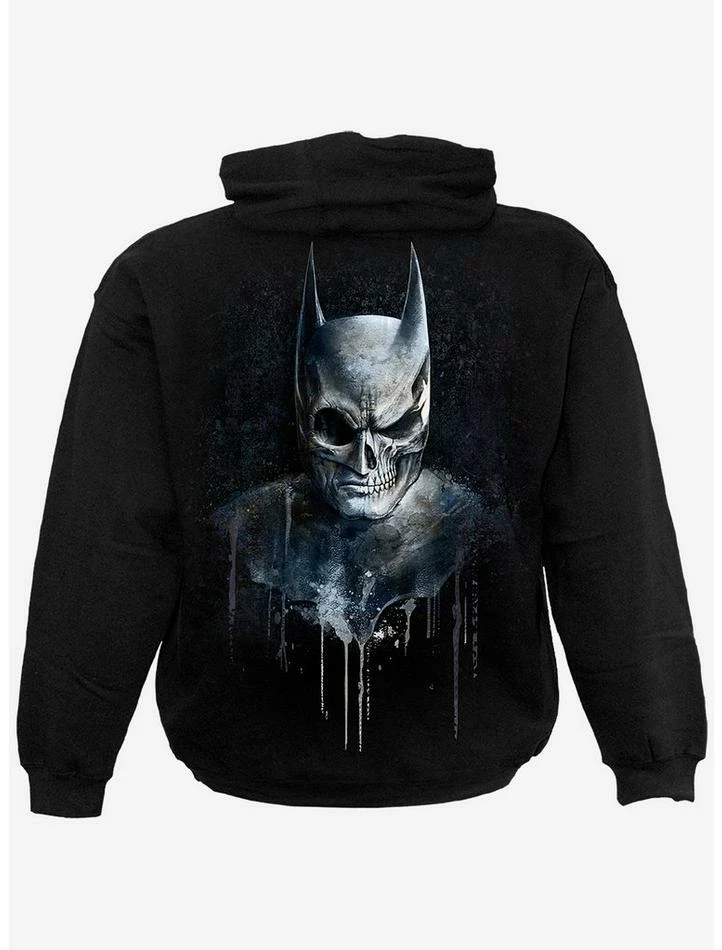 Inspired by the urban elements of Gotham City, this graffiti-inspired design shows the skeletal face behind The Bat, splattered with paint drips and distressed textures. This hoodie is made of top quality cotton fleece using skin friendly, Azo-free, reactive dyes.