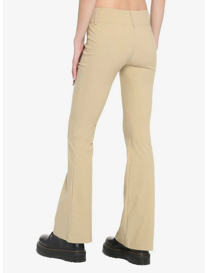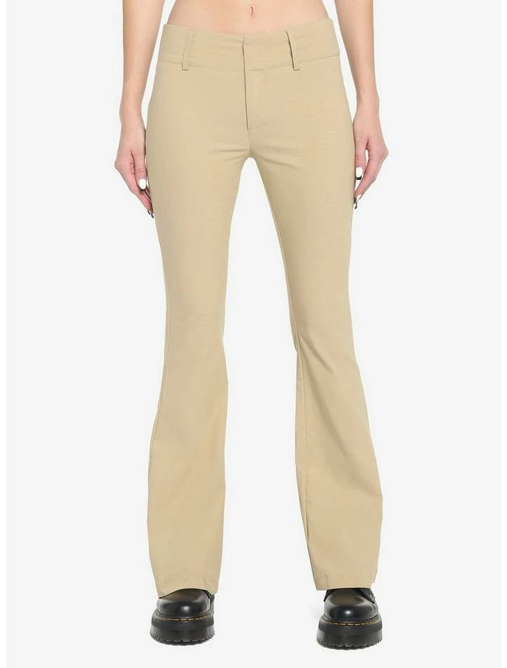 Lookin’ to add more basics to your wardrobe? We gotchu! These beige pants have a flare leg silhouette, belt loops and a double hook and bar closure.