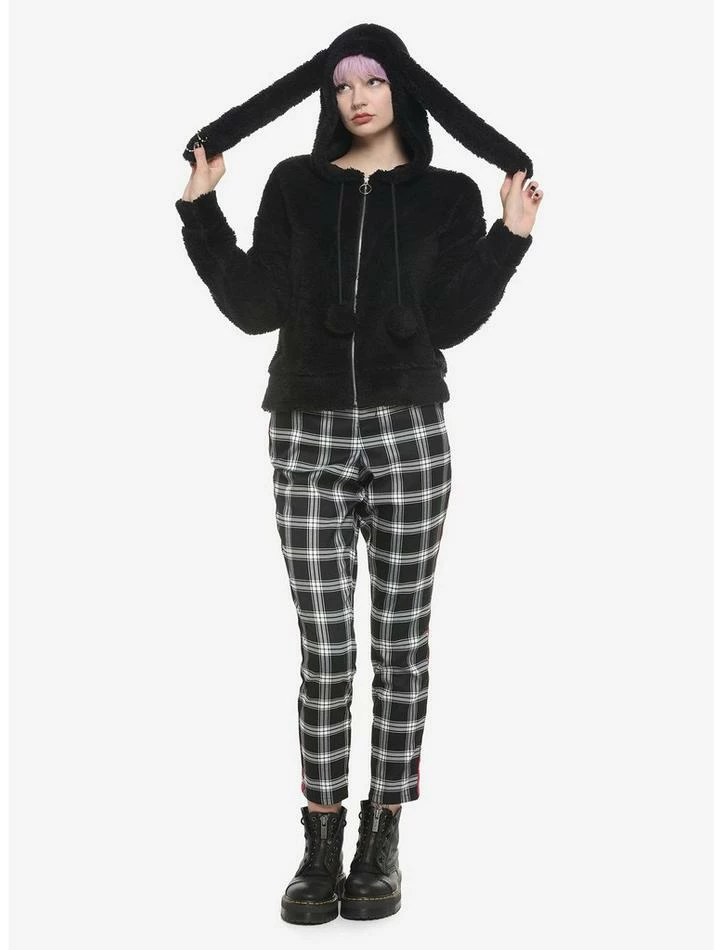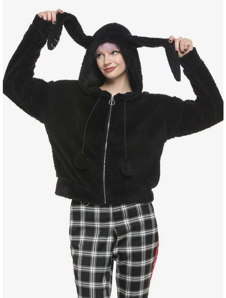 Feelin’ chilly? Warm up by hopping into this cropped fuzzy zip-up hoodie. Comes with poms and the end of the drawstrings 3D bunny ears on the hood. One of the bunny ears is pierced!