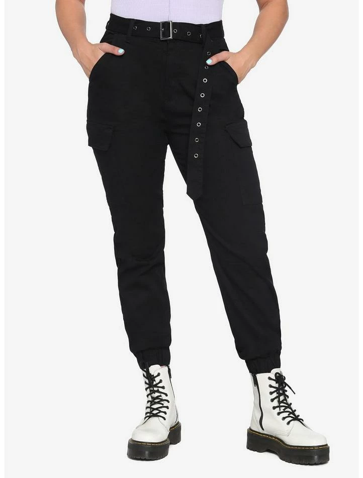 These black cargo pants from are a must have for any wardrobe. A buckle-belted waist, 6 pocket tapered design has a button and zip fly and elastic tapered ankles. Pair with a vintage band tee and boots for an effortlessly cool look.