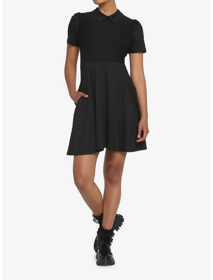 Β Is it possible to have too many black dresses? Nope. This one features a collar, pockets and back zipper closure.