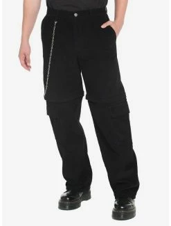 Shorts and pants in one? We’re in! This pair of black corduroy carpenter pants have zip-off legs that transform them into shorts. There are cargo pockets on each leg and a removable chain.