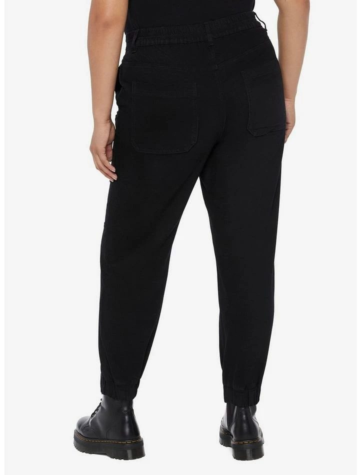 Keep your streetwear lookin’ classic and comfy in these black jogger pants! They feature hip, thigh and back pockets and a double button closure. Comes with a half elasticated waistband and elasticated ankles.