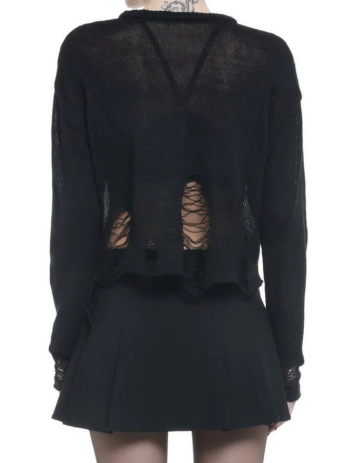 Regular black sweaters can be so boring… but not this one! It features a cropped fit and just the right amount of distressing to make your next ‘fit interesting.