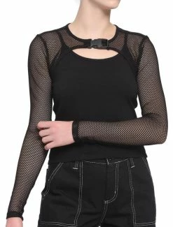 This twofer top is giving ’90s Hackers vibes. Amp up a basic black cami with the accompanying black fishnet buckle top and you’re Y2K in no time.