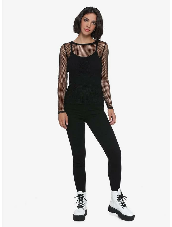 Looking for more fierce layers? This black fishnet long-sleeved tee is just the thing. Layer it under or over dresses, tees, tanks and more.Β