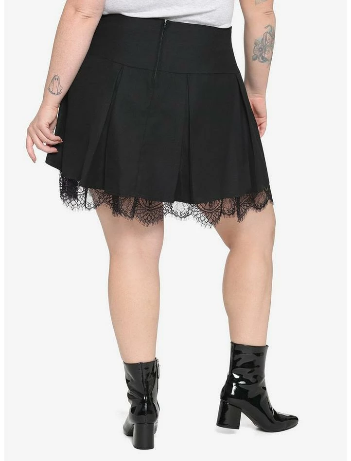No such thing as too many skirts. This black one features double neon green lace-up detailing at the waist, pleats, lace trimming under skirt and back zipper closure.