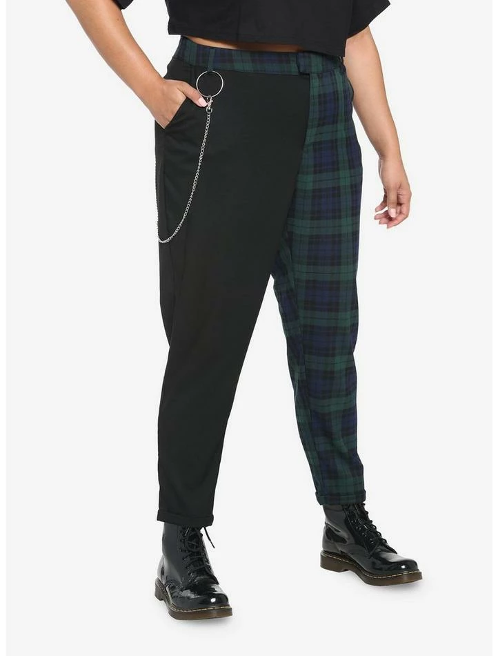 Budget ๐ฅฐ Black & Green Plaid Split Pants Plus Size ๐