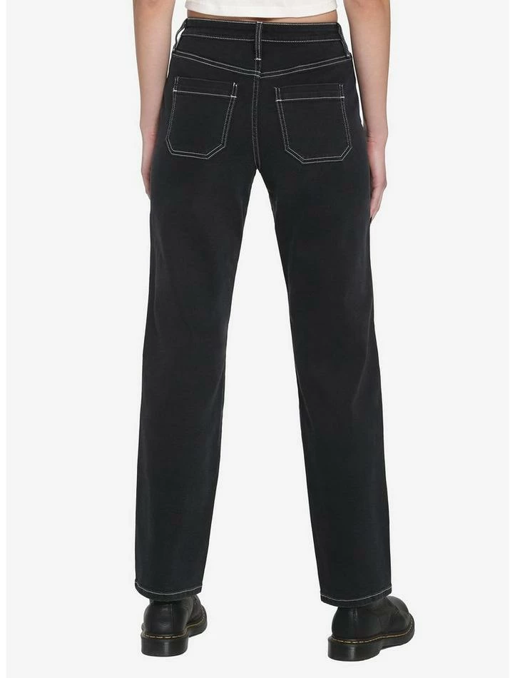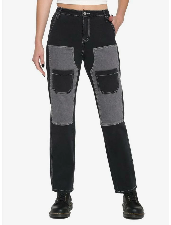 Looking for that perfect pair of carpenter pants? Look no further — this pair features a washed black denim with grey panels on the front, and small black pockets on top. Contrast stitching throughout.