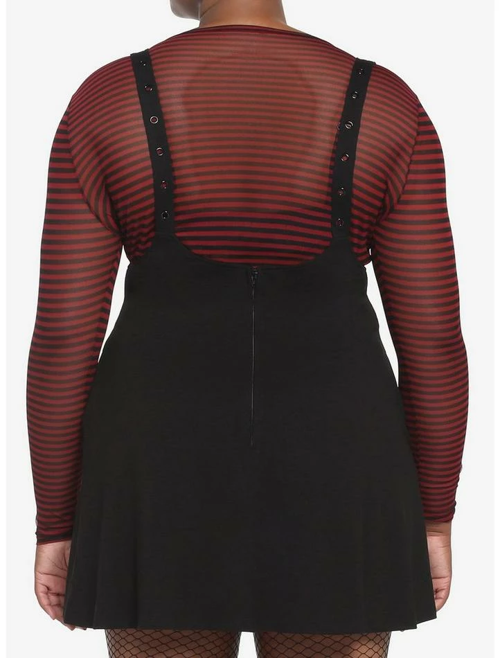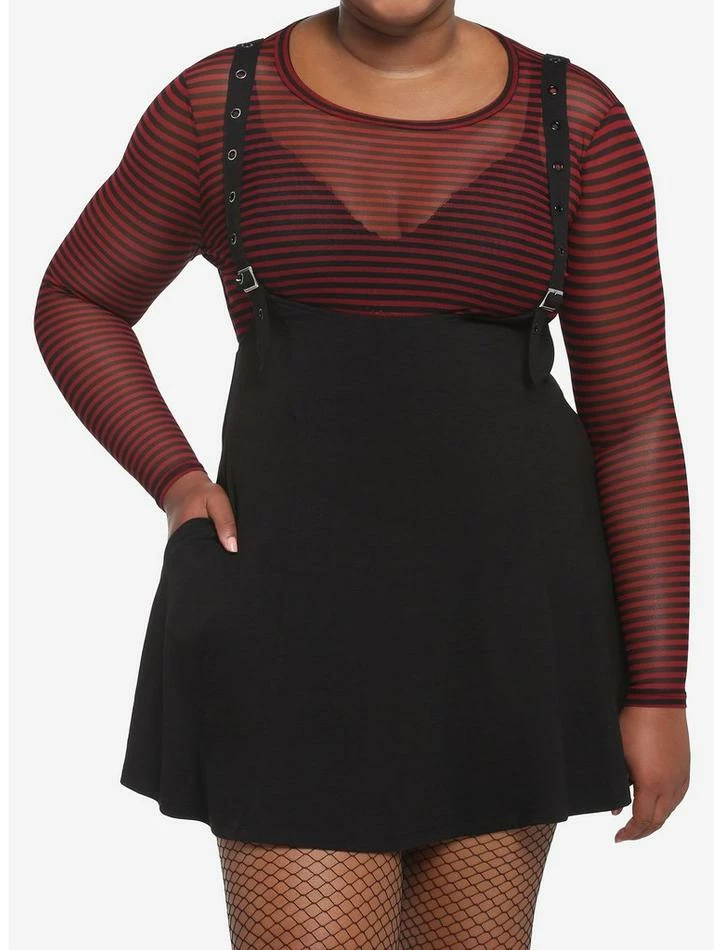 Sometimes you want a suspender skirt that will make a statement, and sometimes you want one for everyday wear. This black style is high-waisted and has grommet detailing on the suspenders for added edge. Oh, it has pockets too.
