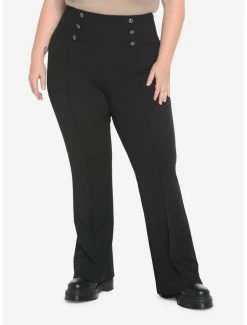 Wanna let everyone know you are the HBIC? Channel major boss babe vibes in these black hi-rise pants! Featuring a flare silhouette and skull and crossbones button detailing at the waist.
