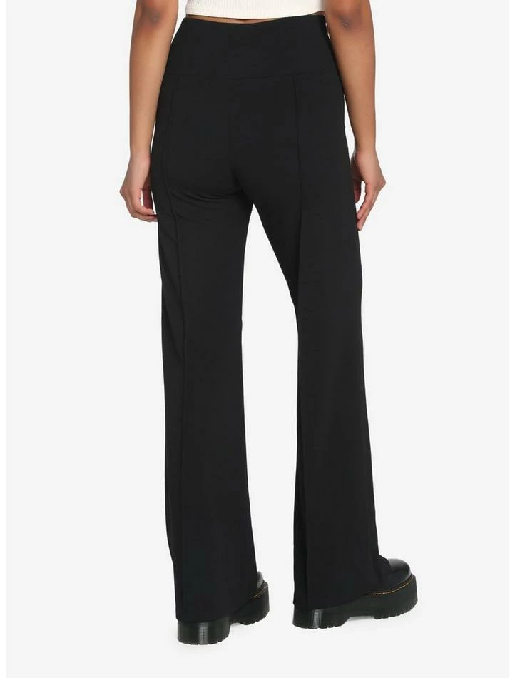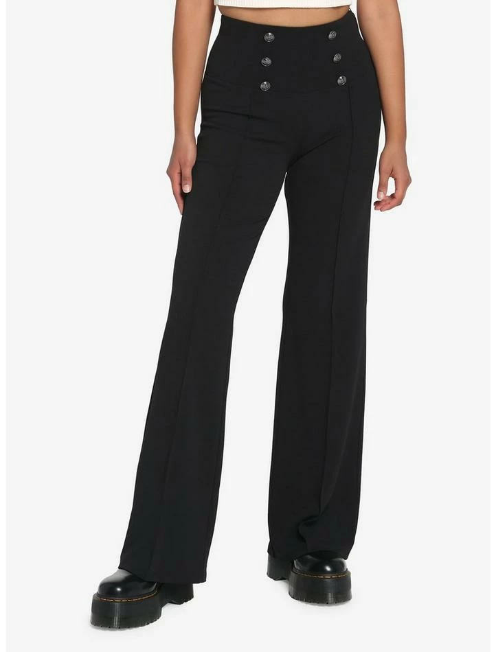 Wanna let everyone know you are the HBIC? Channel major boss babe vibes in these black hi-rise pants! Featuring a flare silhouette and skull and crossbones button detailing at the waist.