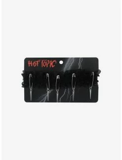 Keep your look cute, but edgy with a new choker! This black lace one features silver-tone safety pin detailing with spike charms.