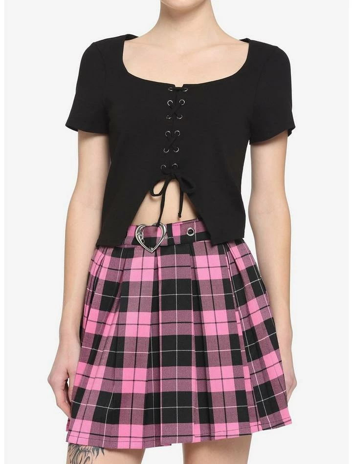 Ready for a subtle but statement-making top? This lace-up crop top with a cutout is it. Throw it on with some cute bottoms and you’re good to go.
