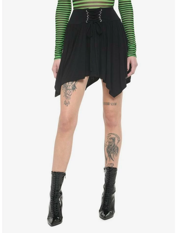 Bring some subtle witchy vibes to your wardrobe with this hanky hem skirt. It has supersoft material and lace-up detail in the front so you can get that perfect fit.