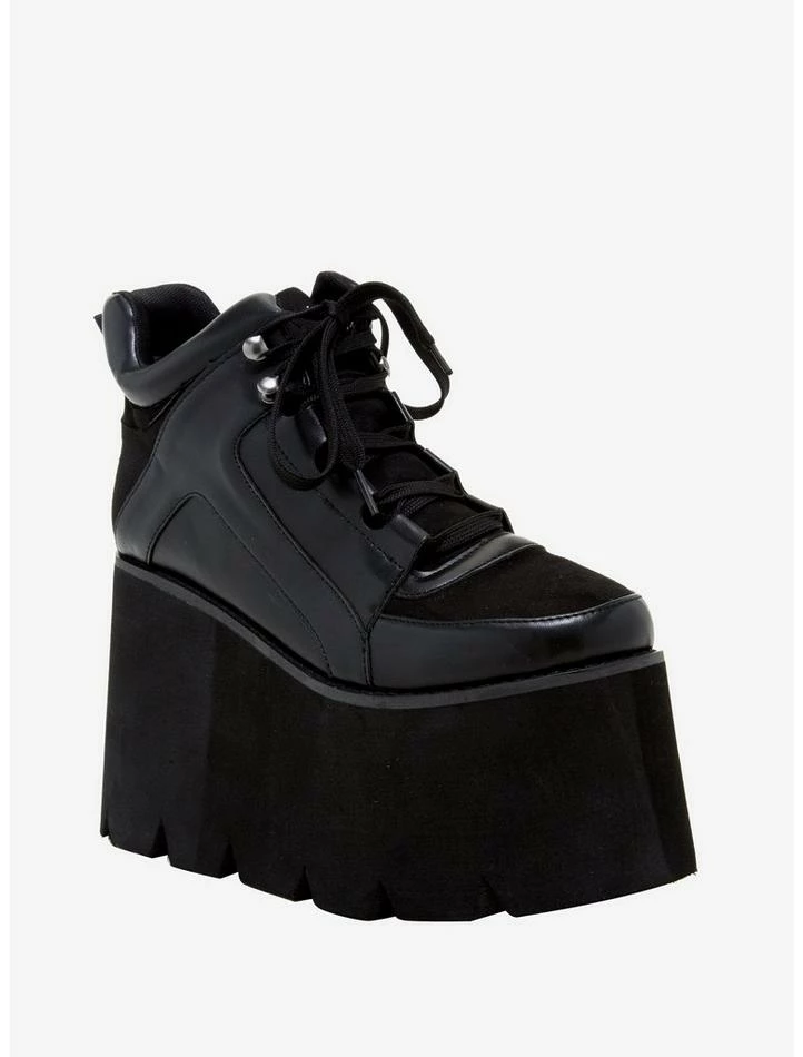 Your fashion game is already a step ahead, and now it can be a step above. These lace-up black platform sneakers will have you towering atop the competition in no time.
