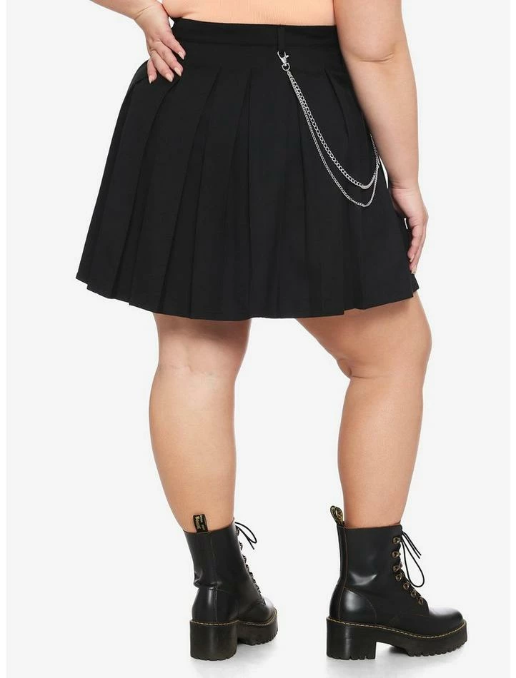 ย A staple in every wardrobe: A black skirt! Match almost any top in this black pleated skirt. Features belt loops and a detachable O-ring chain. Side zipper closure.