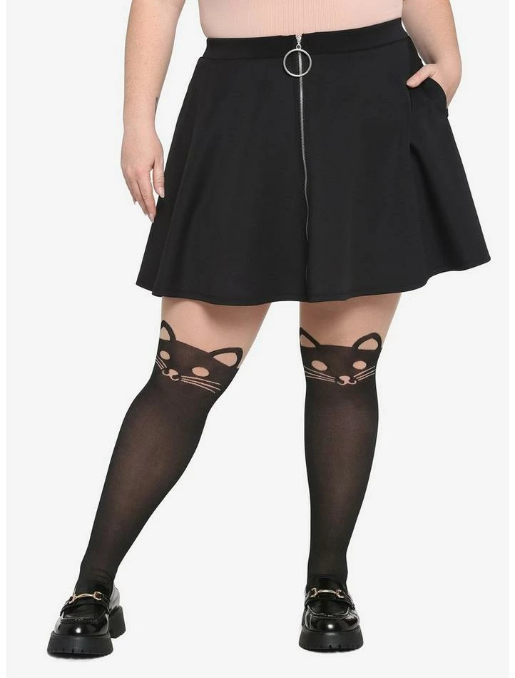 You can’t go wrong on a night out with this black scuba skater skirt. This classic style has the right amount of stretch, an O-ring zipper and pockets.