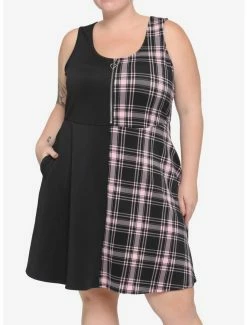 New โ Black & Pink Plaid Split Skater ๐ Dress Plus Size ๐งจ