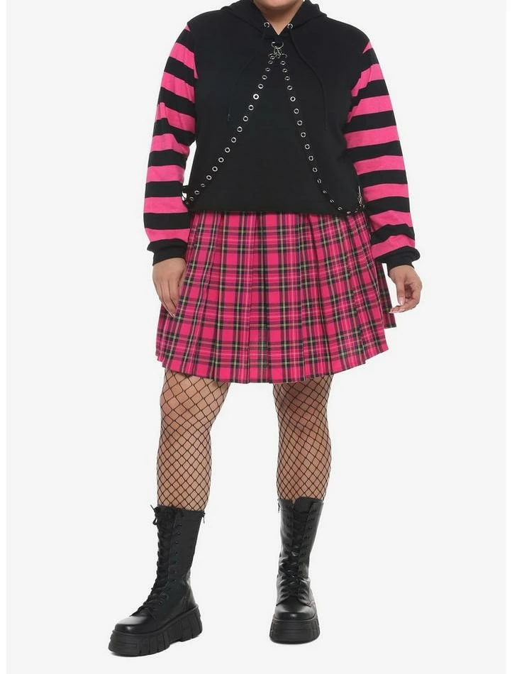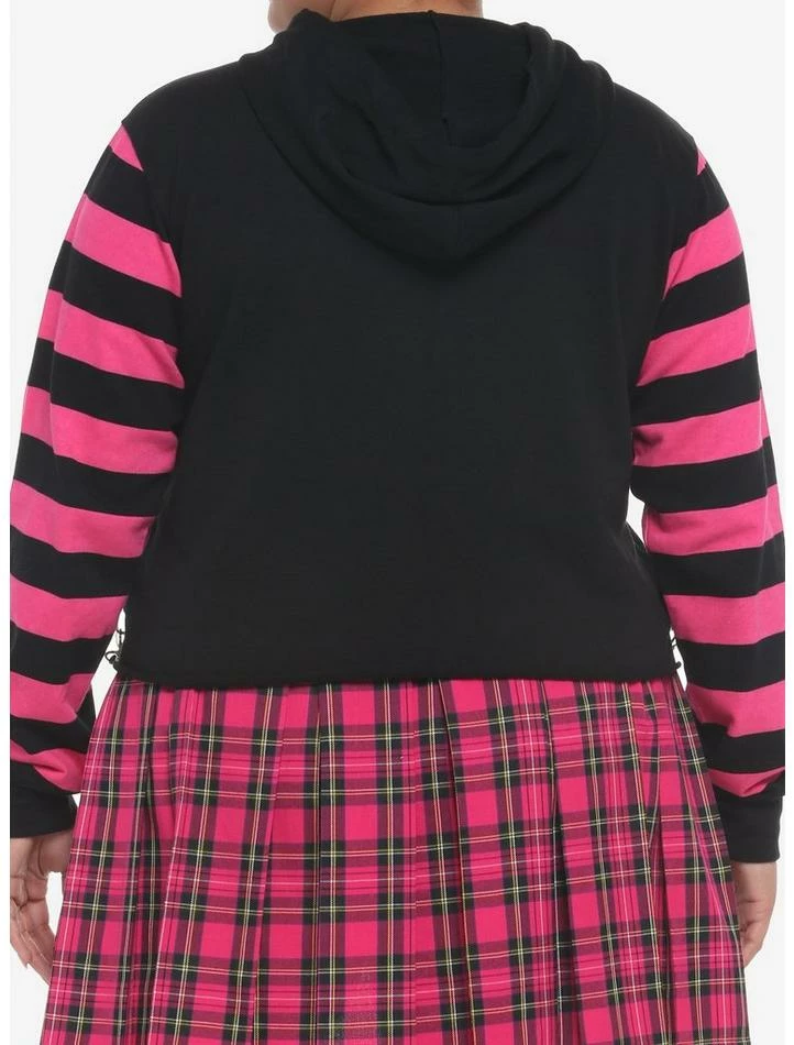 Deals ๐ฅ Black & Pink Stripe Harness ๐ง Girls Crop Hoodie Plus Size ๐ฅฐ