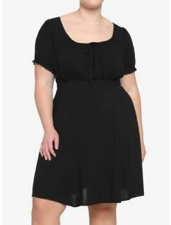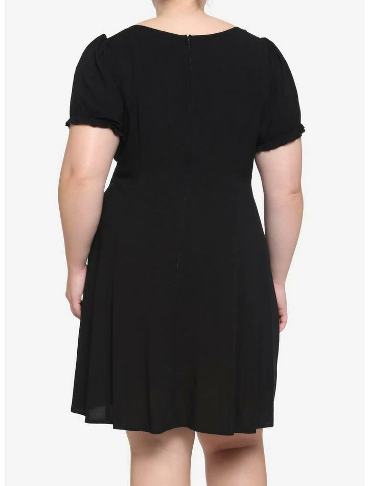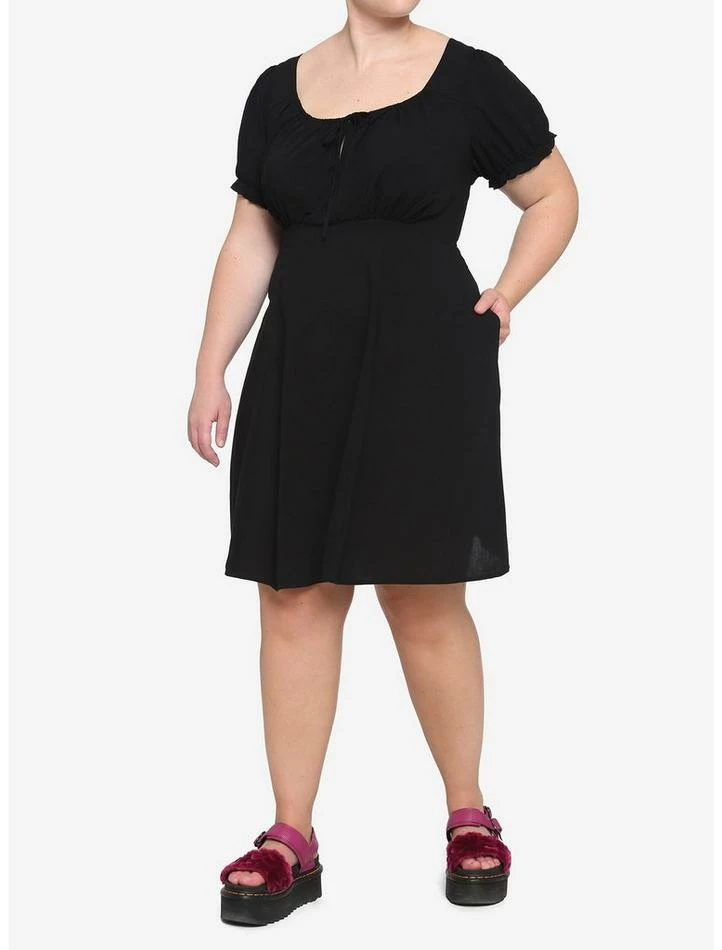 ย No such thing as too many little black dresses! This one features an empire waist, puff sleeves, keyhole detailing on the front with tie and back zipper closure.ย
