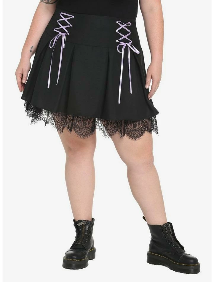 New skirt alert! This little number features pastel purple lace-up detail on the hips, a black lace trim at the bottom hem and pleats.