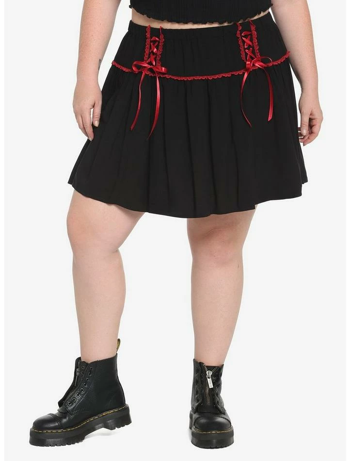 Tell everyone it’s not a phase when you wear this skirt! It features red lace detailing and red ribbon lace-up detailing near the elasticated waist.