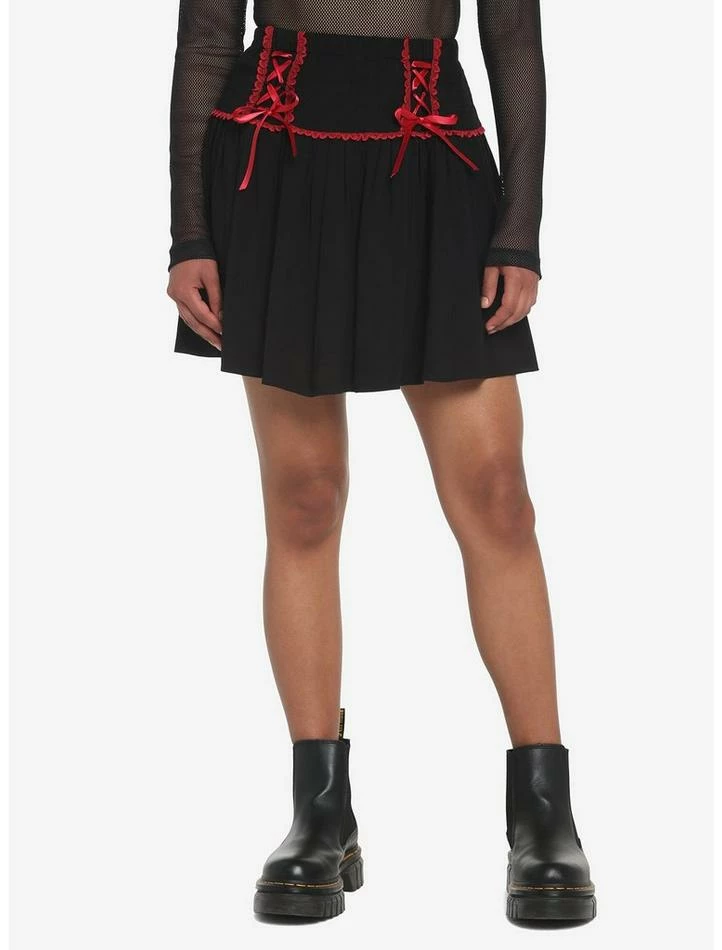 Tell everyone it’s not a phase when you wear this skirt! It features red lace detailing and red ribbon lace-up detailing near the elasticated waist.