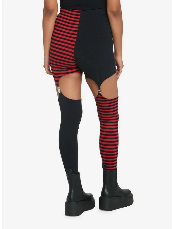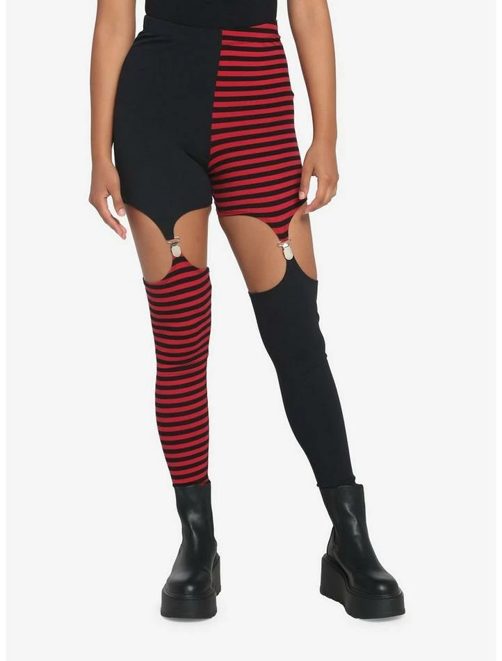 ย If black and red is your uniform, these leggings will soon be your faves. They feature a split leg design and have garters that are detachable, if you’re feeling the bike shorts vibe.