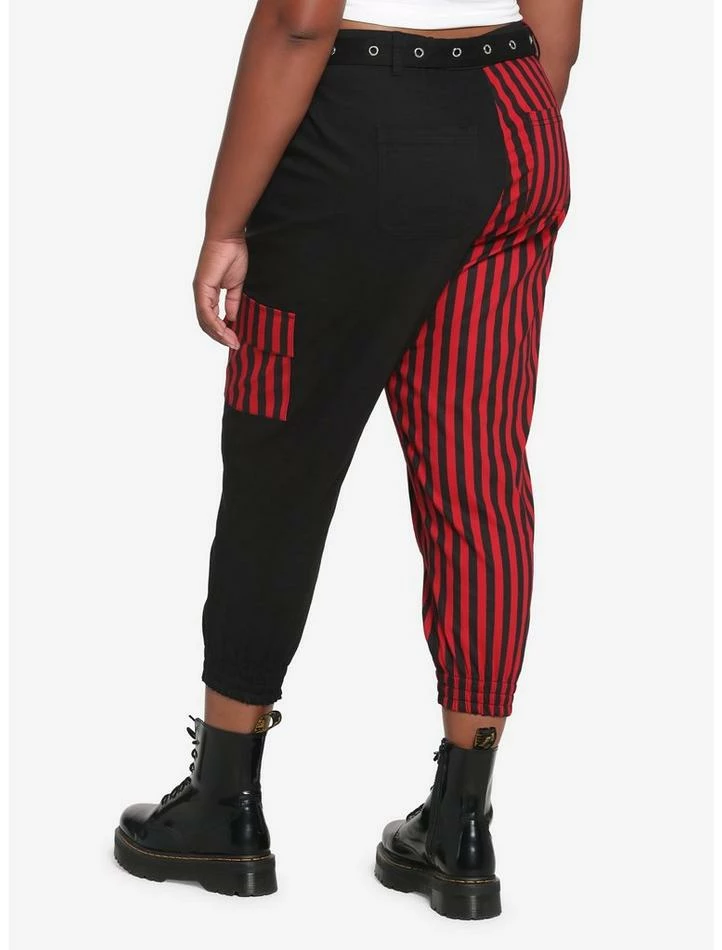 Flash Sale ๐งจ Black & Red Stripe Split Cargo Joggers With Belt Plus Size ๐