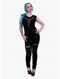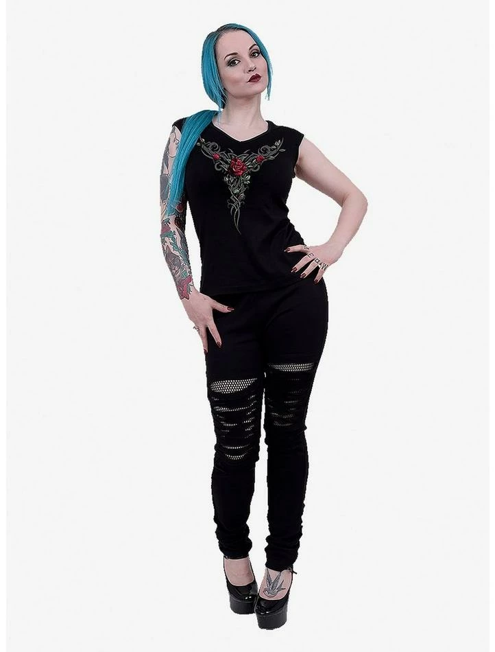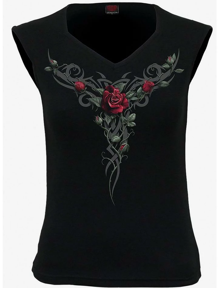 The elegant amalgamation of a beautifully delicate red rose with the bold strength and freedom of a flowing tribal pattern. Fragility and brutality collide – the ultimate fusion of petal and metal. This sleeveless tee is made of top quality cotton using skin friendly, Azo-free, reactive dyes.