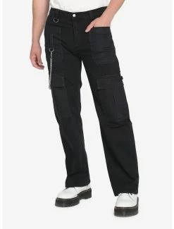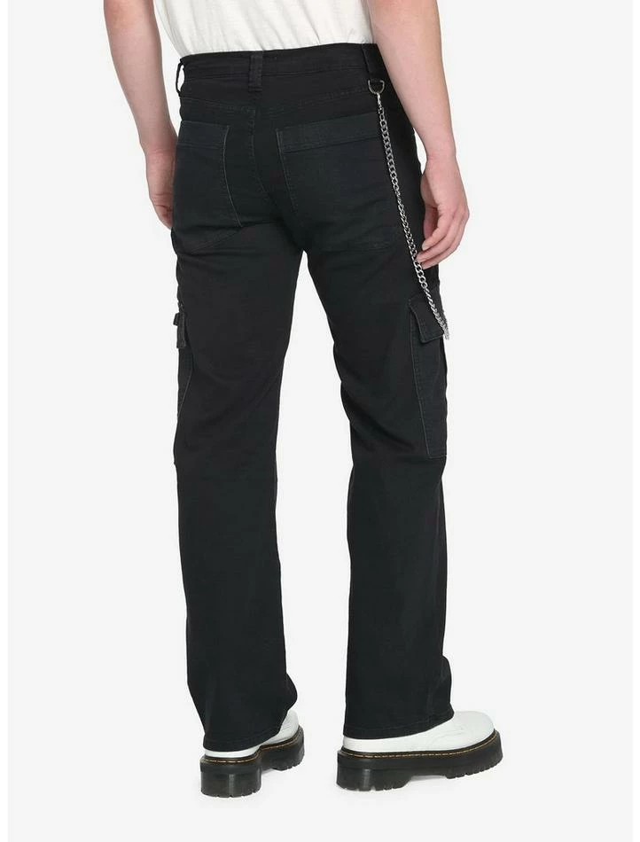 You can never have enough pockets! These black carpenter pants have hip and back pockets, plus leg pockets. Comes with a detachable, silver-tone chain and a button and zipper closure.