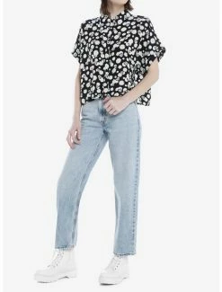 Top 10 ๐ฏ Black Skull ๐ง Girls Woven Button-Up Top With Clip-On Tie ๐ฅ