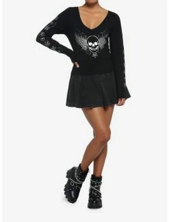 Enroll in the school of death with this woven button-up top. It gives major academia vibes thanks to its exaggerated collar, clip-on tie and embroidered skull chest hit.