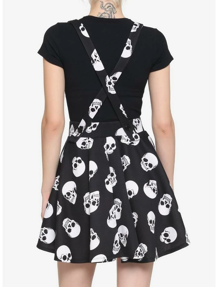 We feel it in our bones… you are meant to have this cute skirt! It features an allover print of skulls, and comes with adjustable button suspender straps. Complete with an elasticated waistband.