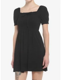 This little black dress has a dreamy vibe thanks to its puff sleeves, smocked bust and flowy skirt. It has a tie bow on the front and pockets. Add it to your LBD rotation today.