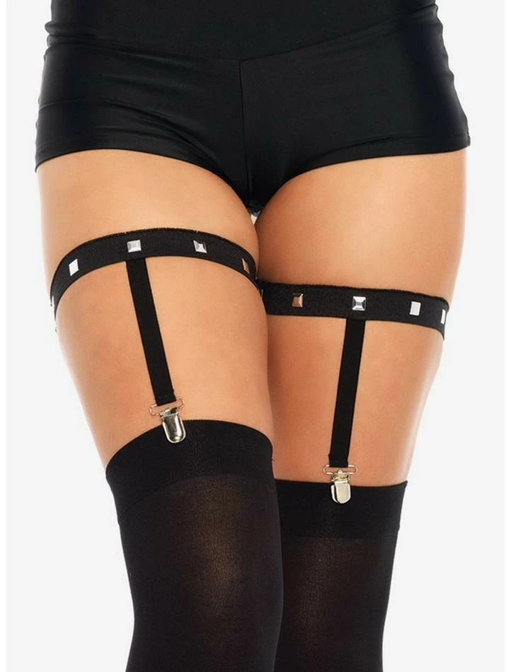 Everything is cooler with studs. These black stretchy garters feature stud accents and silver tone clips for long socks or stockings.