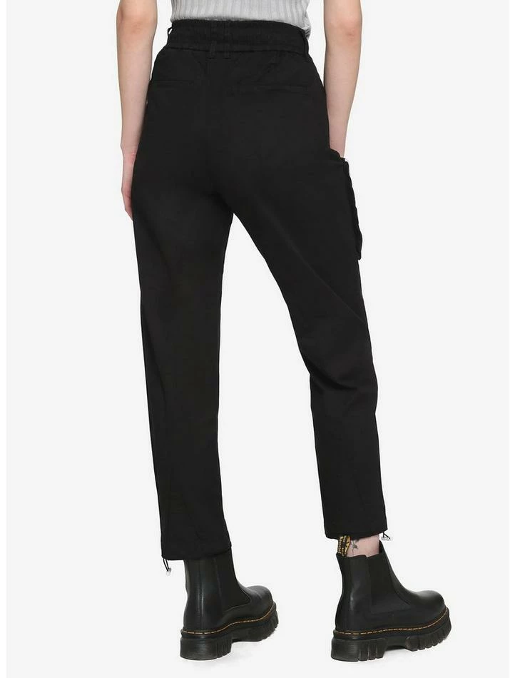Keep your belongings secure, while also looking stylish in these black jogger pants! These pants feature hip and cargo thigh pockets, with white contrast zipper closures. They come with an elasticated drawstring waistband and drawstring detailing at the ankles.
