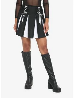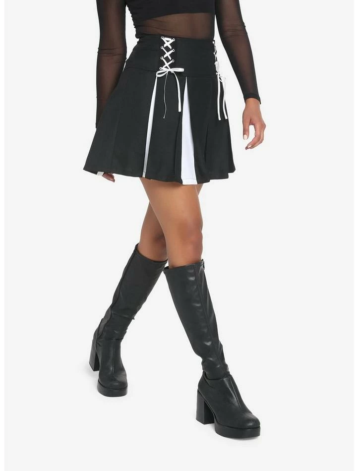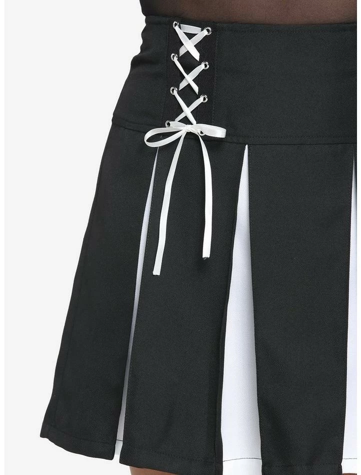 We’re finishing off our OOTD with a bow… or two! It’s practically written in black & white that this lace-up skirt is the perfect addition to your outfit. Featuring contrasting black & white pleats and white lace-up details on the wide yoke.