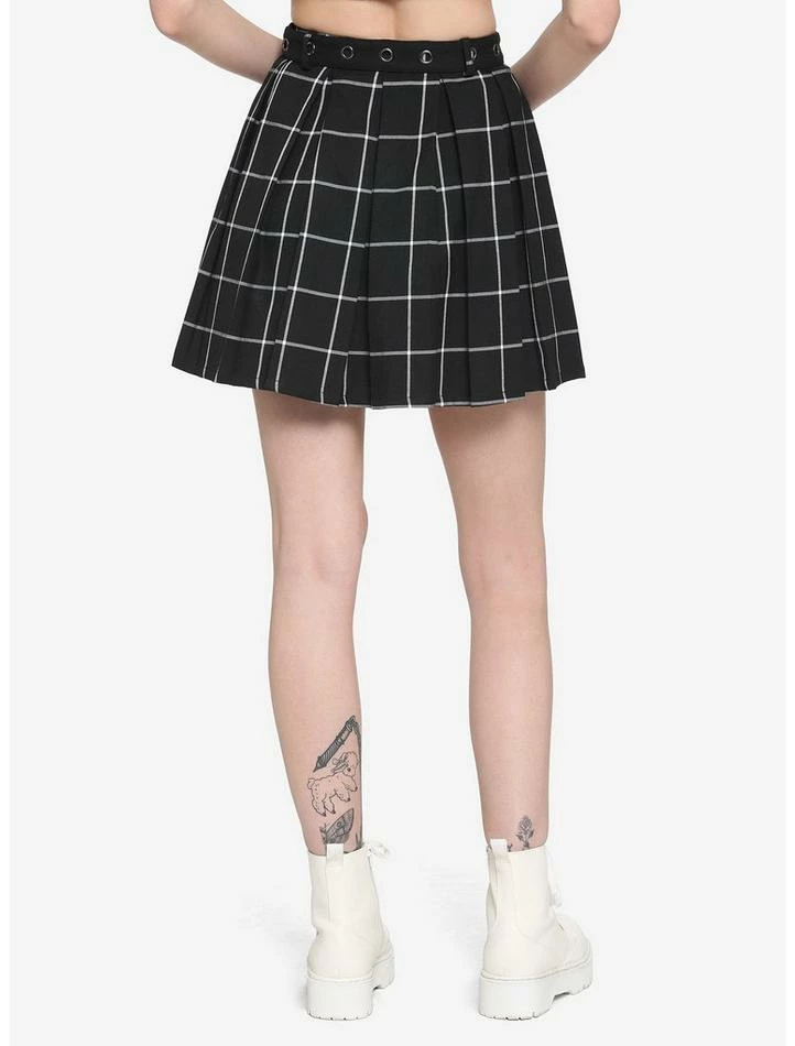 Get that ’90s-grunge-schoolgirl look with this plaid pleated skirt! Its black-and-white color combo will match with anything, and its grommet belt gives it that extra, edgy oomph.