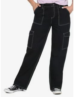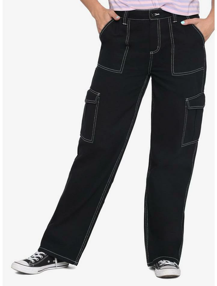 Carpenter pants are for more than just woodworking! These black pants feature a contrasting white stitch, with a high waist, zipper and button closure and hip, rear and leg pockets.