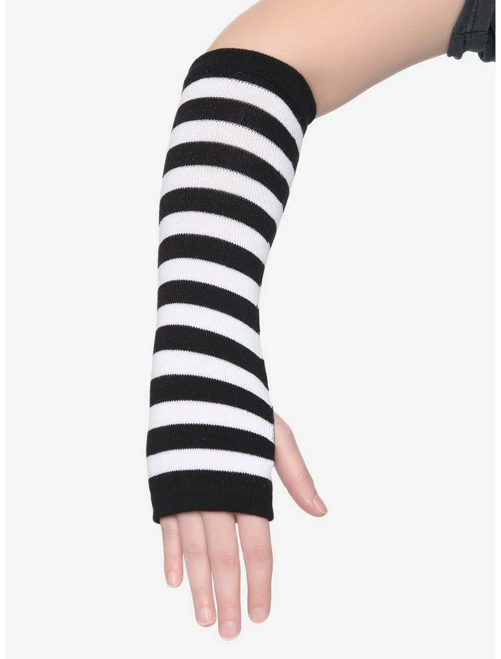 Arm warmers are back, and we have a pair just for you! These black and white striped arm warmers will pair well with any alt ‘fit.