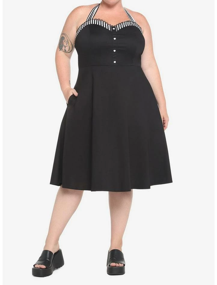 Cheap ๐งจ Black & White Stripe Retro Halter ๐ Dress Plus Size ๐