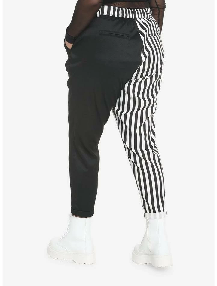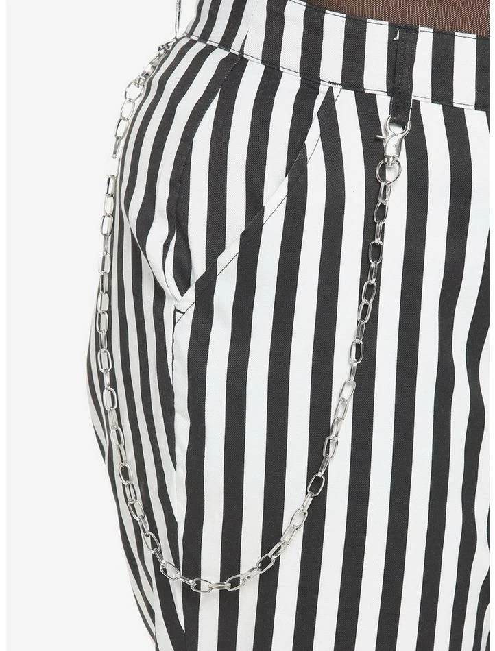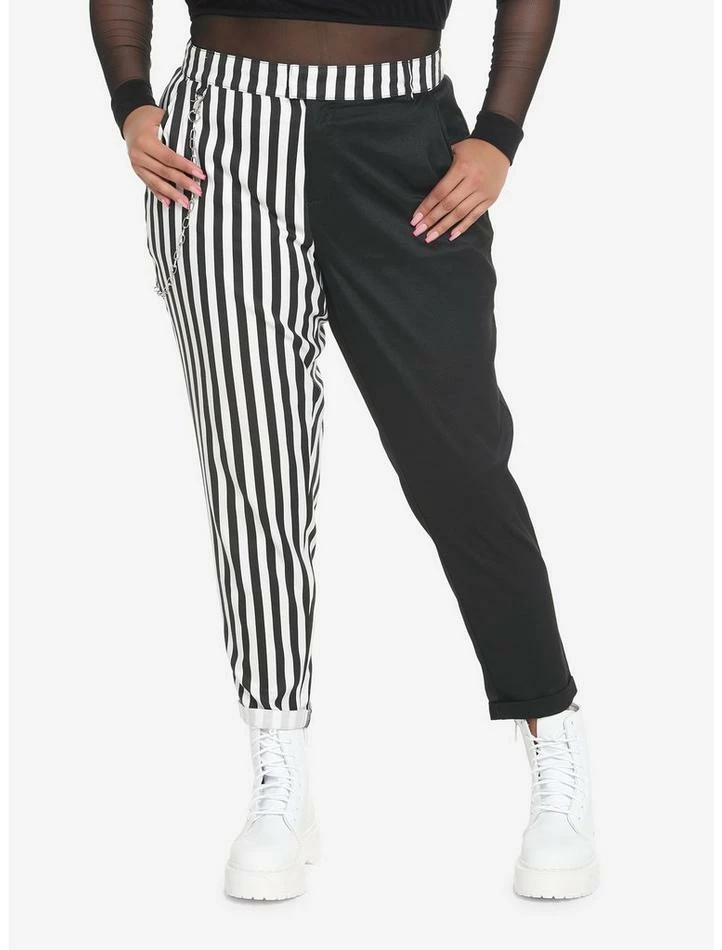 Add more bold looks to your rotation, starting with this pair of pants! They feature a black and white stripe split design and comes with a removable side chain. Comes with hip and back pockets, cuffed ankles and a half elasticated waistband.