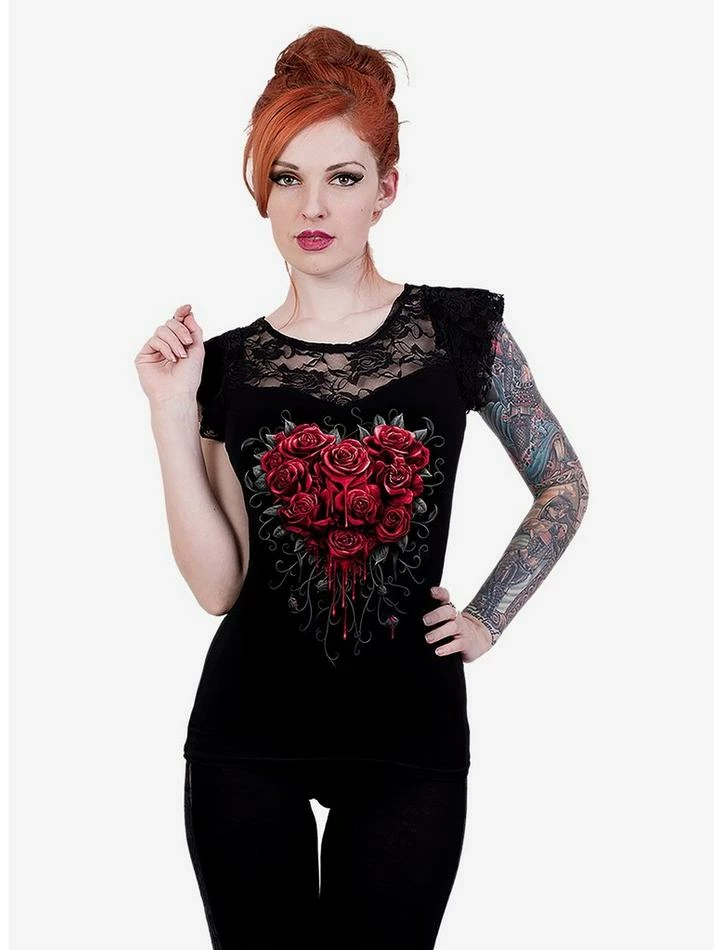 This lace layered cap sleeve top is made of viscose jersey using skin friendly, Azo-free, reactive dyes.