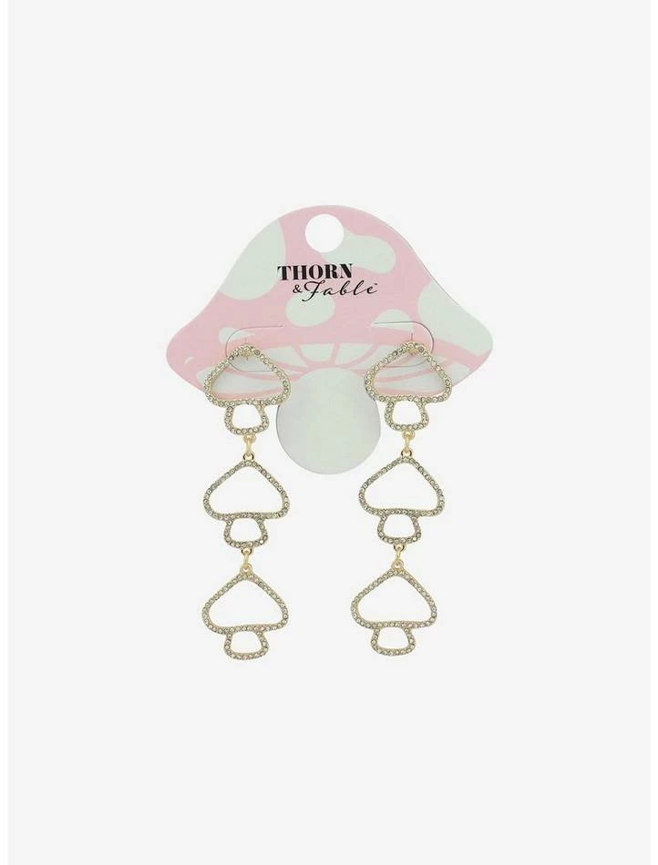 Make some (mush)room in your jewelry collection for some bling! These drop earrings will add some whimsy and shine to any outfit, featuring bejeweled mushroom charms and gold-tone hardware.