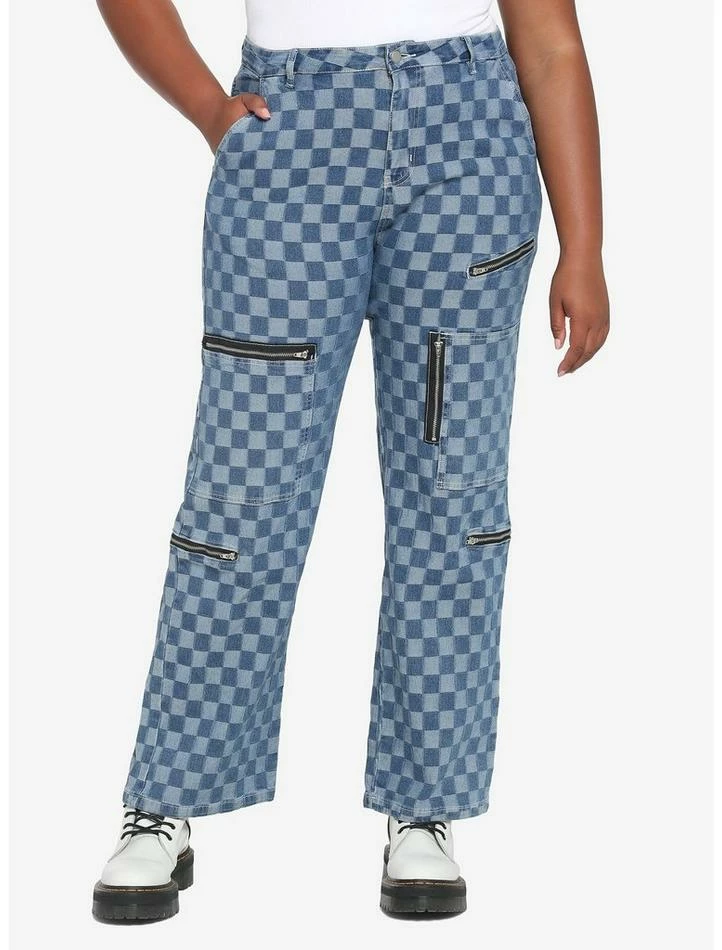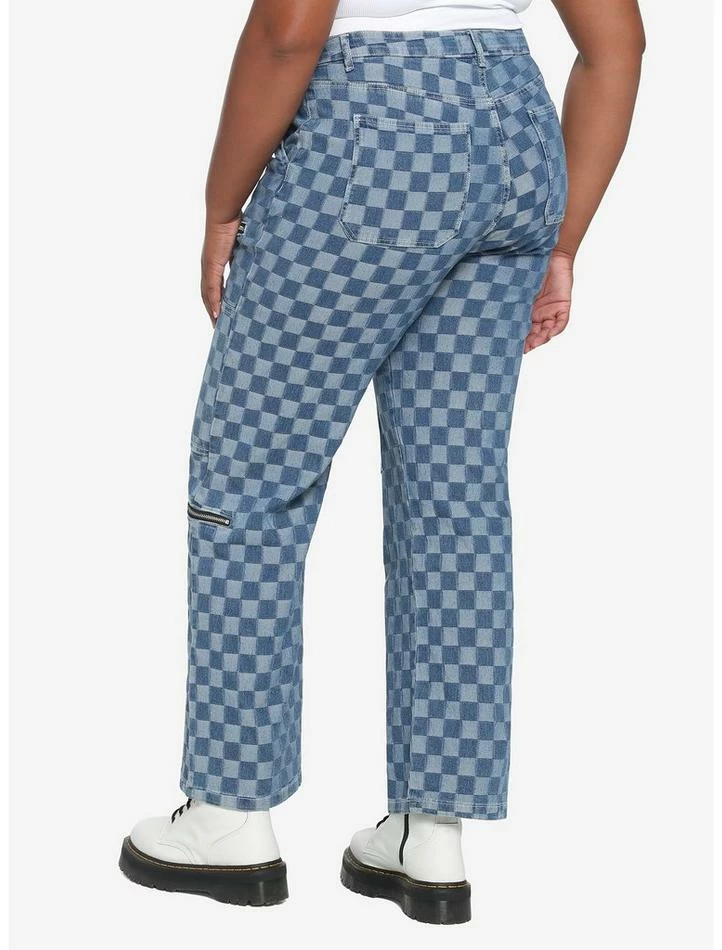 Promo โญ Blue Checkered Denim Straight Leg ๐ Jeans Plus Size โจ
