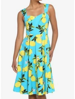 Looking to add something vibrant and fun to your closet? This retro dress will have you lookin’ your very zest! Step out in some 50’s style with this bright sweetheart dress, featuring an allover print of lemons, princess seams at the bust and smocking on the back.ย